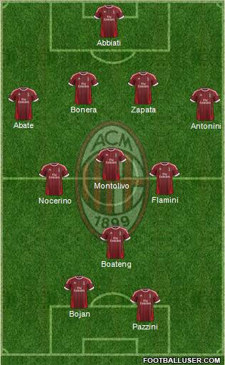 Pazzini · Bojan · Boateng · Nocerino · Flamini · Montolivo · Antonini · Abate · Bonera · Zapata · Abbiati