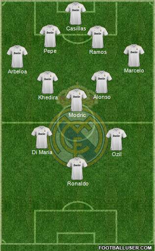 Casillas · Pepe · Ramos · Marcelo · Arbeloa · Alonso · Khedira · Modric · Di Maria · Ozil · Ronaldo