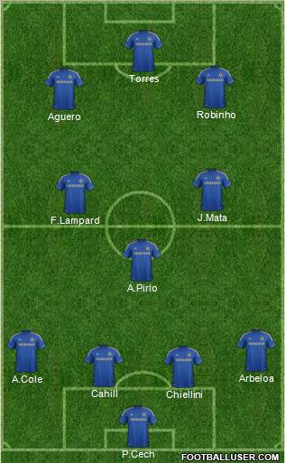 P.Cech · Chiellini · Cahill · A.Cole · Arbeloa · A.Pirlo · F.Lampard · J.Mata · Aguero · Robinho · Torres