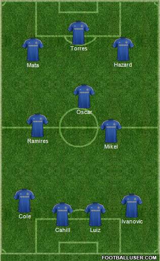 Cahill · Luiz · Ivanovic · Cole · Mikel · Ramires · Oscar · Mata · Hazard · Torres