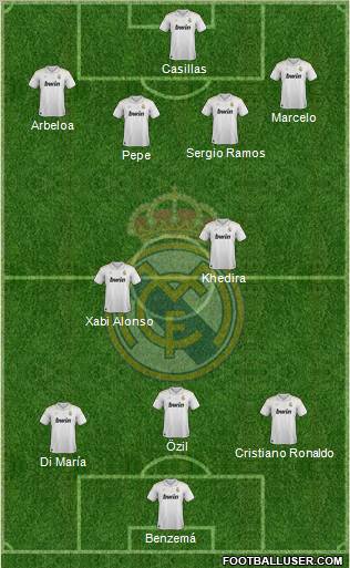 Benzemá · Di María · Cristiano Ronaldo · Özil · Xabi Alonso · Khedira · Pepe · Sergio Ramos · Arbeloa · Marcelo · Casillas