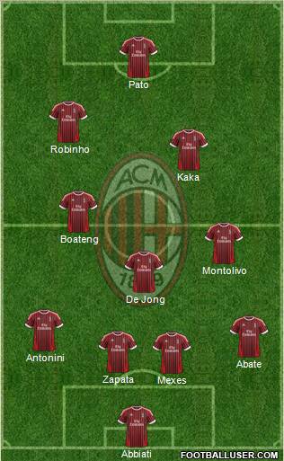 Abbiati · Mexes · Zapata · Abate · Antonini · De Jong · Montolivo · Boateng · Kaka · Robinho · Pato