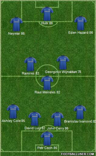 Petr Cech 85 · John Terry 86 · David Luiz 82 · Branislav Ivanović 83 · Ashley Cole 85 · Raul Meireles 82 · Ramires 82 · Georginio Wijnaldum 78 · Neymar 86 · Eden Hazard 86 · Hulk 86
