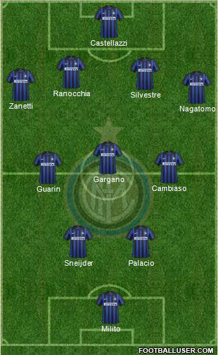 Castellazzi · Ranocchia · Silvestre · Zanetti · Nagatomo · Gargano · Cambiaso · Guarin · Sneijder · Palacio · Milito