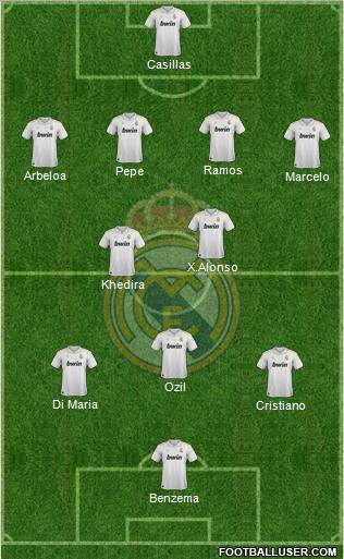 Casillas · Ramos · Pepe · Arbeloa · Marcelo · X.Alonso · Khedira · Ozil · Di Maria · Cristiano · Benzema