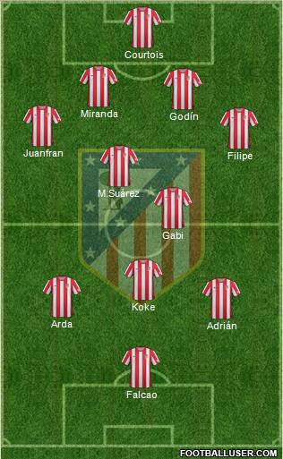 Courtois · Miranda · Godín · Juanfran · Filipe · M.Suárez · Gabi · Koke · Arda · Adrián · Falcao