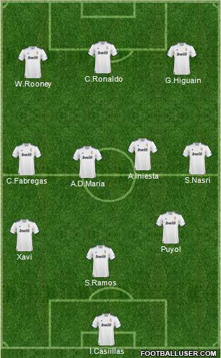 C.Ronaldo · G.Higuain · W.Rooney · A.Iniesta · S.Nasri · C.Fabregas · A.D.Maria · Puyol · Xavi · S.Ramos · I.Casiillas