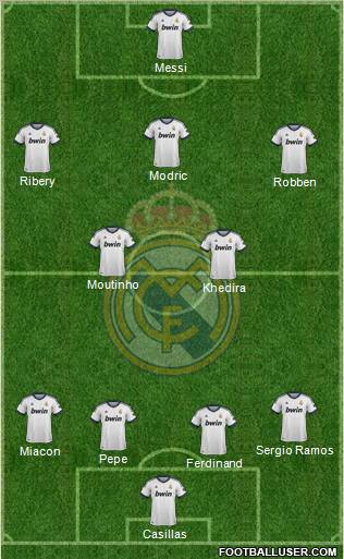 Casillas · Ferdinand · Pepe · Miacon · Sergio Ramos · Khedira · Moutinho · Robben · Ribery · Modric · Messi