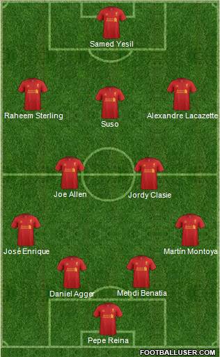 Pepe Reina · Daniel Agger · Mehdi Benatia · José Enrique · Martín Montoya · Jordy Clasie · Joe Allen · Suso · Raheem Sterling · Alexandre Lacazette · Samed Yesil