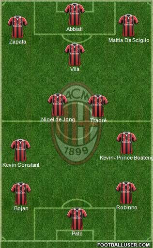 Pato · Bojan · Robinho · Kevin Constant · Kevin- Prince Boateng · Traoré · Nigel de Jong · Vilá · Zapata · Mattia De Sciglio · Abbiati