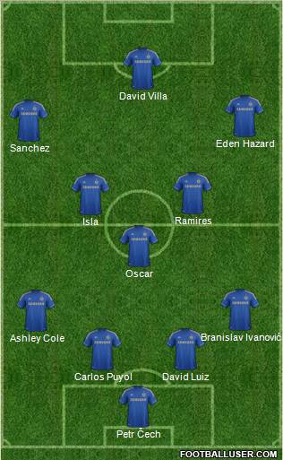 Petr Čech · Carlos Puyol · David Luiz · Ashley Cole · Branislav Ivanović · Oscar · Isla · Ramires · Sanchez · Eden Hazard · David Villa