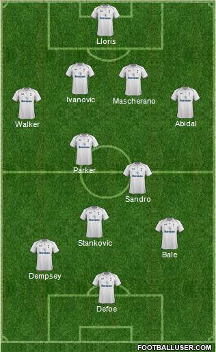Defoe · Dempsey · Bale · Stankovic · Sandro · Parker · Walker · Abidal · Mascherano · Ivanovic · Lloris