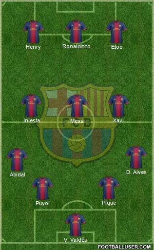 V. Valdés · Puyol · Pique · Abidal · D. Alves · Messi · Iniesta · Xavi · Henry · Etoo · Ronaldinho