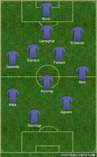 Bunn · Carragher · B.Davies · Gerrard · Fellaini · Zabaleta · Bale · Rooney · Mata · Aguero · Sturridge
