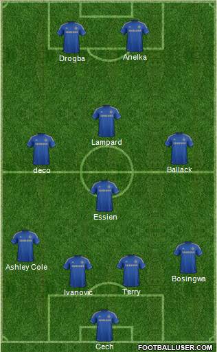 Cech · Ivanovic · Terry · Bosingwa · Ashley Cole · Essien · deco · Ballack · Lampard · Drogba · Anelka