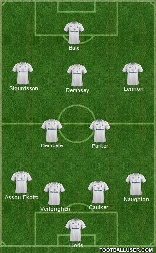 Lloris · Vertonghen · Caulker · Naughton · Assou-Ekotto · Parker · Dembele · Dempsey · Lennon · Sigurdsson · Bale