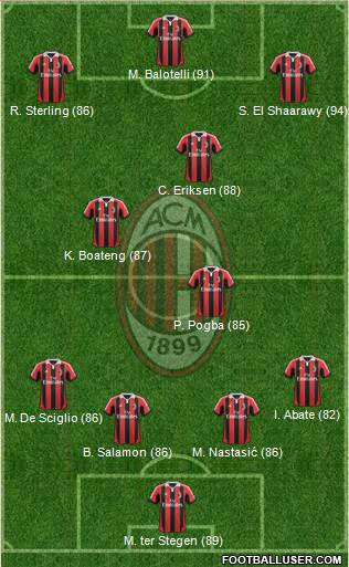 M. ter Stegen (89) · B. Salamon (86) · M. Nastasić (86) · M. De Sciglio (86) · I. Abate (82) · P. Pogba (85) · K. Boateng (87) · C. Eriksen (88) · R. Sterling (86) · S. El Shaarawy (94) · M. Balotelli (91)