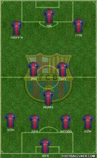 פינטו · פיקה · מסצ'ראנו · אלבס · אלבה · בוסקטס · צ'אבי · ססק · אייניסטה · פדרו · מסי