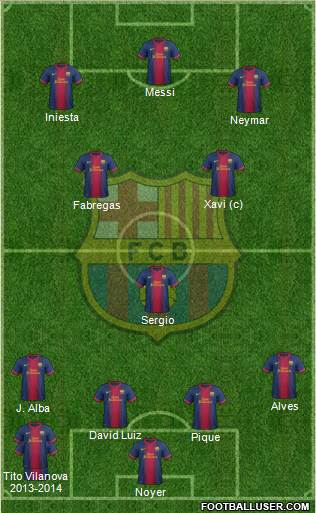 Noyer · 2013-2014 · Tito Vilanova · Pique · David Luiz · J. Alba · Alves · Sergio · Fabregas · Xavi (c) · Neymar · Iniesta · Messi