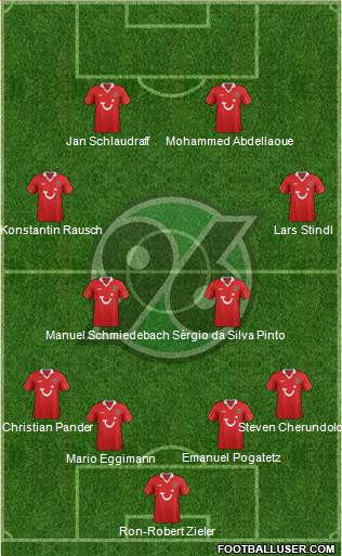 Ron-Robert Zieler · Mario Eggimann · Emanuel Pogatetz · Christian Pander · Steven Cherundolo · Manuel Schmiedebach · Sérgio da Silva Pinto · Konstantin Rausch · Lars Stindl · Jan Schlaudraff · Mohammed Abdellaoue