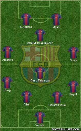 Valdés · Gérard Piqué · Alba · Puyol · Song · Cesc Fabregas · Sheik · Alcantra · Andres Iniesta(CAP) · Messi · S.Aguëro