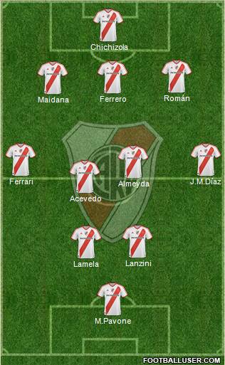Chichizola · Román · Ferrero · Maidana · Ferrari · J.M.Díaz · Almeyda · Acevedo · Lanzini · Lamela · M.Pavone