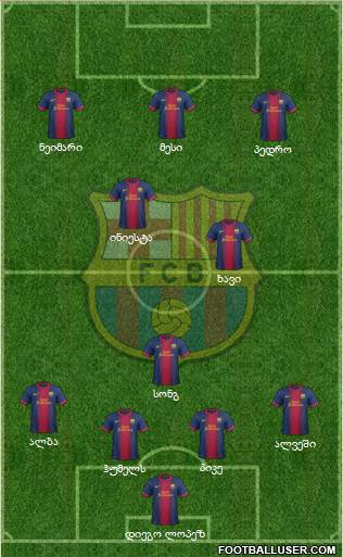 დიეგო ლოპეზ · ჰუმელს · პიკე · ალვეში · ალბა · სონგ · ხავი · ინიესტა · პედრო · ნეიმარი · მესი