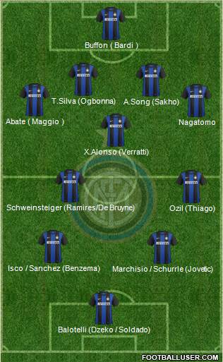 Balotelli (Dzeko / Soldado) · Marchisio / Schurrle (Jovetic) · Isco / Sanchez (Benzema) · Ozil (Thiago) · Schweinsteiger (Ramires/De Bruyne) · X.Alonso (Verratti) · Nagatomo · Abate ( Maggio ) · A.Song (Sakho) · T.Silva (Ogbonna) · Buffon ( Bardi )