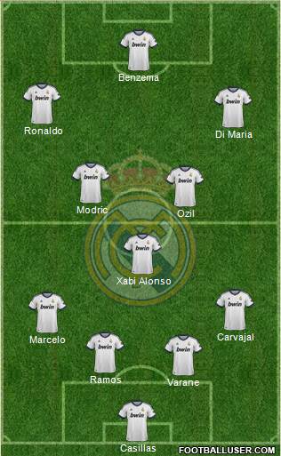 Casillas · Varane · Ramos · Marcelo · Carvajal · Xabi Alonso · Ozil · Modric · Di Maria · Ronaldo · Benzema