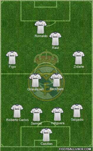 Casillas · Samuel · Helguera · Roberto Carlos · Salgado · Gravessen · Beckham · Figo · Zidane · Raul · Ronaldo