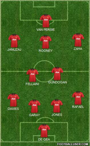 DE GEA · GARAY · JONES · DAVIES · RAFAEL · FELLAINI · GÜNDOGAN · ROONEY · JANUZAJ · ZAHA · VAN PERSIE