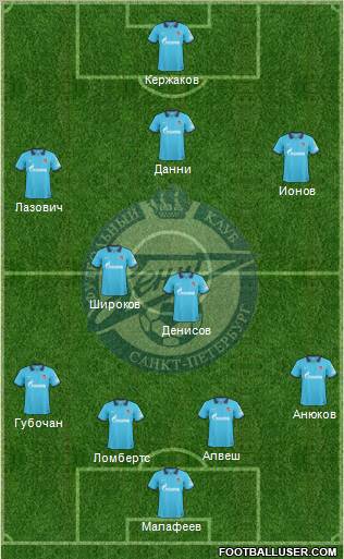 Малафеев · Ломбертс · Алвеш · Губочан · Анюков · Денисов · Широков · Лазович · Ионов · Данни · Кержаков