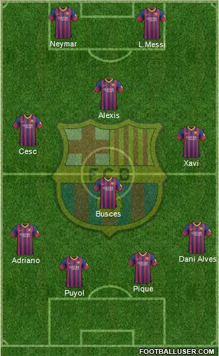 Puyol · Pique · Adriano · Dani Alves · Busces · Xavi · Cesc · Alexis · L.Messi · Neymar