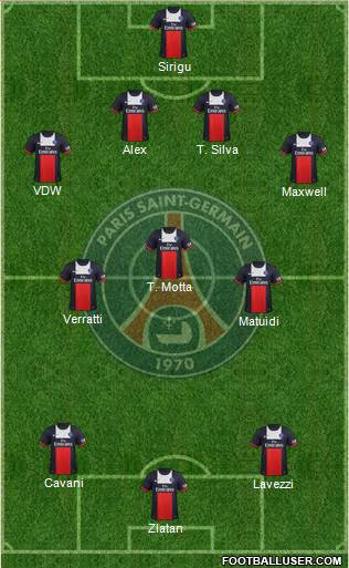 Zlatan · Lavezzi · Cavani · Matuidi · Verratti · T. Motta · Maxwell · VDW · Alex · T. Silva · Sirigu