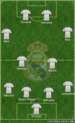 D.Lopez · Mangala · Sergio Ramos · Marcelo · Lichtsteiner · Modric · Ramires · Bale · Kiko · Benzema · Ronaldo