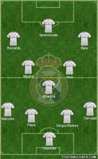 Casillas · Sergio Ramos · Pepe · Marcelo · Carvajal · Khedira · Isco · Modric · Ronaldo · Bale · Ibrahimowic