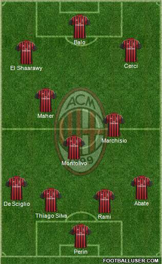 Perin · Rami · Thiago Silva · De Sciglio · Abate · Montolivo · Marchisio · Maher · El Shaarawy · Cerci · Balo
