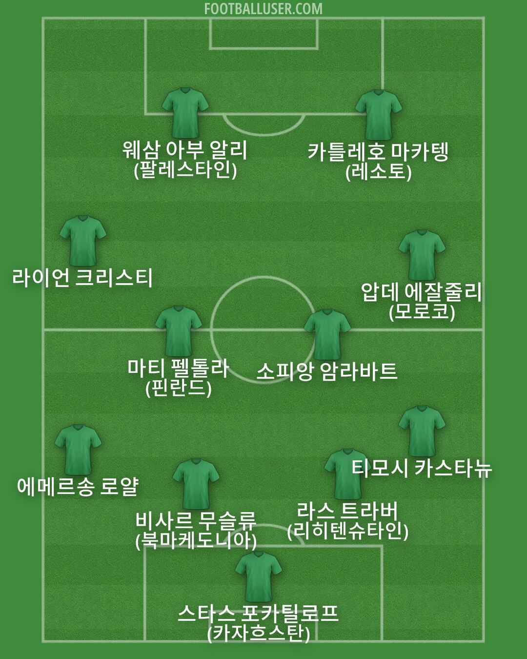 C.Ronaldo · G.Best · B.Charlton · P.Scholes · W.Rooney · E.Cantona · P.Schmeichel · N.Vidic · J.Stam · P.Evra · G.Heinze