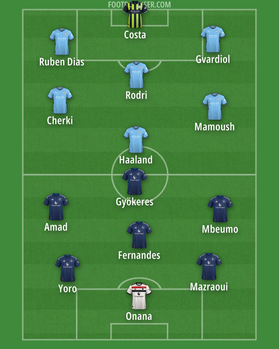 D. Costa · R. Dias · N. Mendes · Inácio · Cancelo · Vitinha · R. Neves · B. Fernandes · B. Silva · Leão · G. Ramos