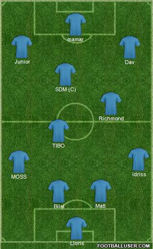 Frey (B04; 2 · 04) · King (SVW; 2 · 83) · Cacéres (B04; 2 · 96) · Lahm (FCB; 2 · 97) · Rafael (SVW; 3 · 04) · Pjanic (HSV; 2 · 57) · Wright-Phillips (SVW; 2 · 63) · Marin (FCB; 2 · 65) · Iniesta (FCB; 2 · 54) · Chamakh (VFL; 1 · 94) · Gomez (B04; 2 · 23)