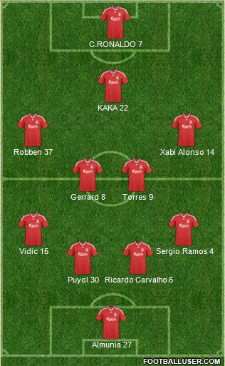 King Kenny · Pepe Reina · Jamie Carragher · Martin Skrtel · Daniel Agger · Glen Johnson · Raul Merieles · Milan Jovanavic · Maxi Rodriguez · Joe Cole · Steven Gerrard (C) · Fernando Torres