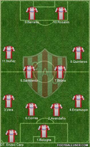 DT.Enzoo Carp · 1.Bologna · 2.Puyol · 6.Avendaño · 3.Correa · 4.Erramuspe · 5.Sarmiento · 7.Nuñez · 8.Bruna · 10.Rosales · 11.Quiroga · 9.Barrales