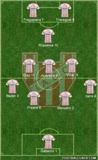 Gabarini 1 · Masuero 2 · Fidelef 6 · Bazan 3 · caire 4 · Acevedo 5 · Villar 8 · Diaz 11 · Riquelme 10 · Sanchez Fernando 7 · Trezeguet 9