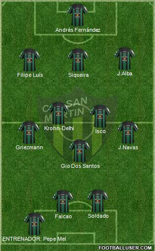 ENTRENADOR: Pepe Mel · Falcao · Soldado · Gio Dos Santos · Griezmann · J.Navas · Isco · Krohn-Delhi · Filipe Luís · Siqueira · J.Alba · Andrés Fernández