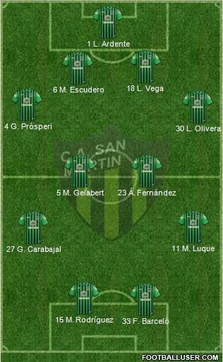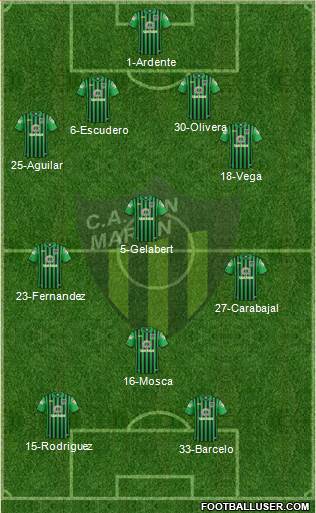 33-Barcelo · 15-Rodriguez · 16-Mosca · 27-Carabajal · 23-Fernandez · 5-Gelabert · 18-Vega · 25-Aguilar · 6-Escudero · 30-Olivera · 1-Ardente