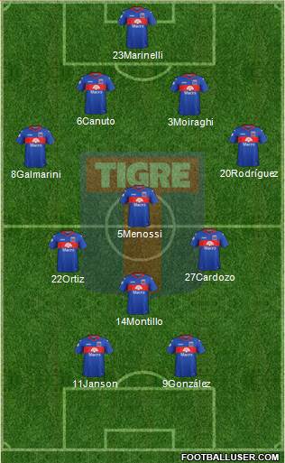 23 Marinelli · 6 Canuto · 3 Moiraghi · 19 Alcoba · 18 Colazo · 17 Perez Acuña · 27 Cardozo · 14 Montillo · 10 Morales · 9 González · 11 Janson