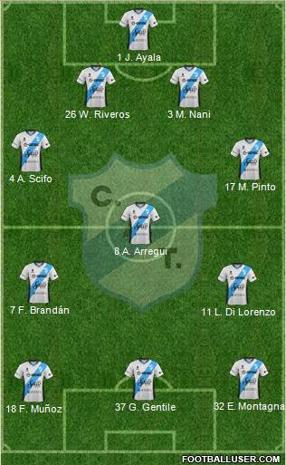 18 F. Muñoz · 37 G. Gentile · 32 E. Montagna · 11 L. Di Lorenzo · 7 F. Brandán · 8 A. Arregui · 17 M. Pinto · 4 A. Scifo · 26 W. Riveros · 3 M. Nani · 1 J. Ayala