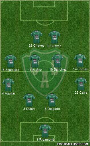 1-Rigamonti · 3-Dutari · 6-Delgado · 4-Aguilar · 23-Caire · 8-Scatolaro · 11-Nuñez · 10-Sanchez · 17-Fornari · 9-Cuevas · 32-Chaves