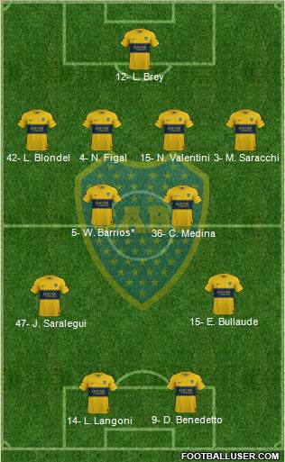 1- Esteban Andrada* (12- L. Brey) · 4- Juan Foyth* (42- L. Blondel) · 2- Adonis Frías* (40- L. Di Lollo) · 32- Ayrton Costa (26- M. Pellegrino) · 23- Lautaro Blanco (27- M. Braida) · 10- Leandro Paredes* © (6- R. Battaglia) · 5- Wilmar Barrios* (43- M. Delgado) · 20- Alan Velasco (30- V. Taborda) · 7- Franco Cristaldo* (8- C. Palacios), ...