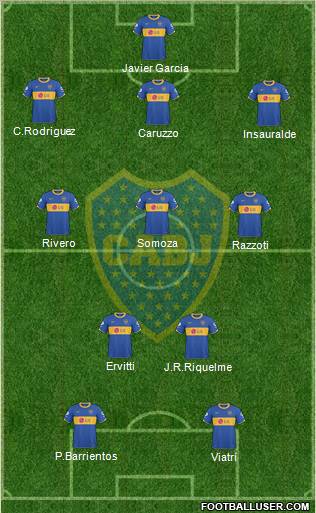 Garcia · Insaurralde · Caruzzo · C.Rodriguez · Cellay · Garnier · S.Battaglia · Riquelme · Erviti · Araujo · Palermo